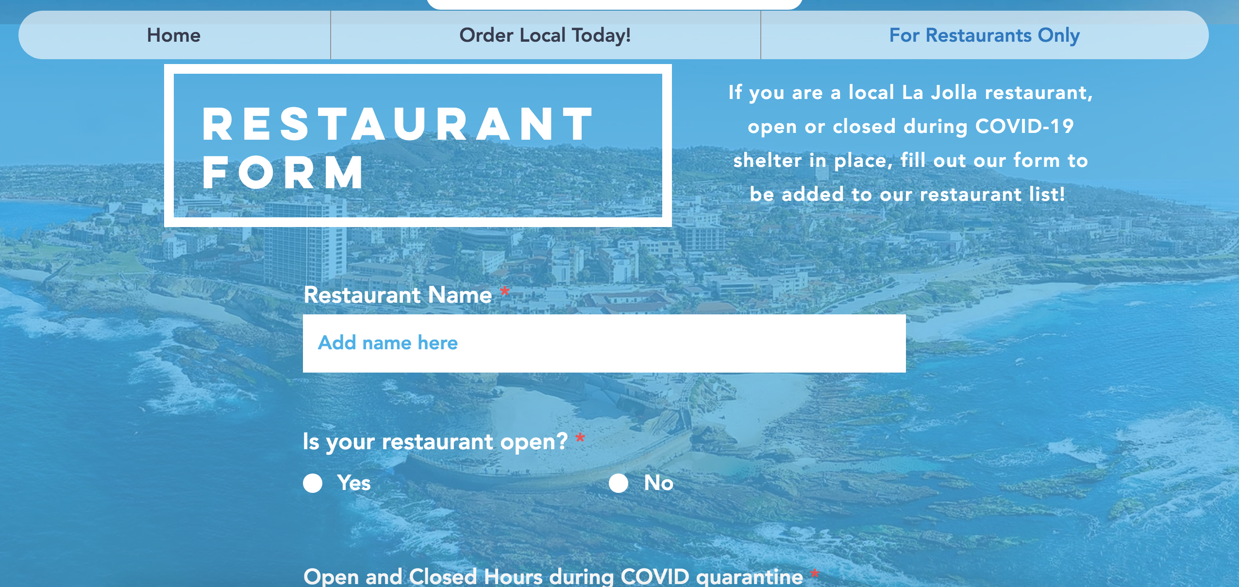 During the onset of COVID-19, I wanted to help support local restaurants in my hometown. Partnering with the Instagram account @lajolla.ca , I made a website that promoted 134 local restaurants still operating during quarantine/shelter-in-place.