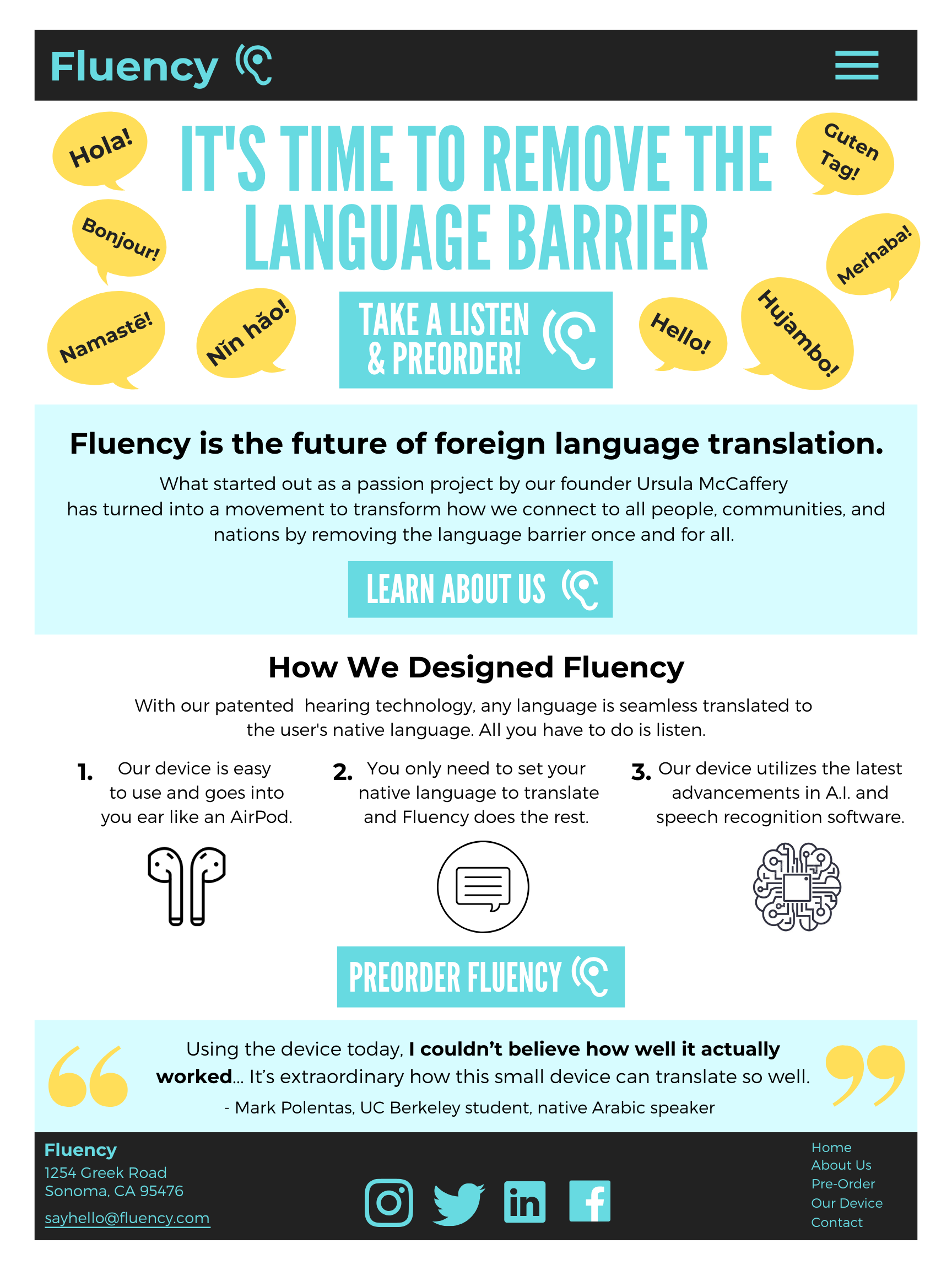 “Fluency” was a language translator technology company where I designed a website for IMC 306: Message Strategy and Persuasive Communication.