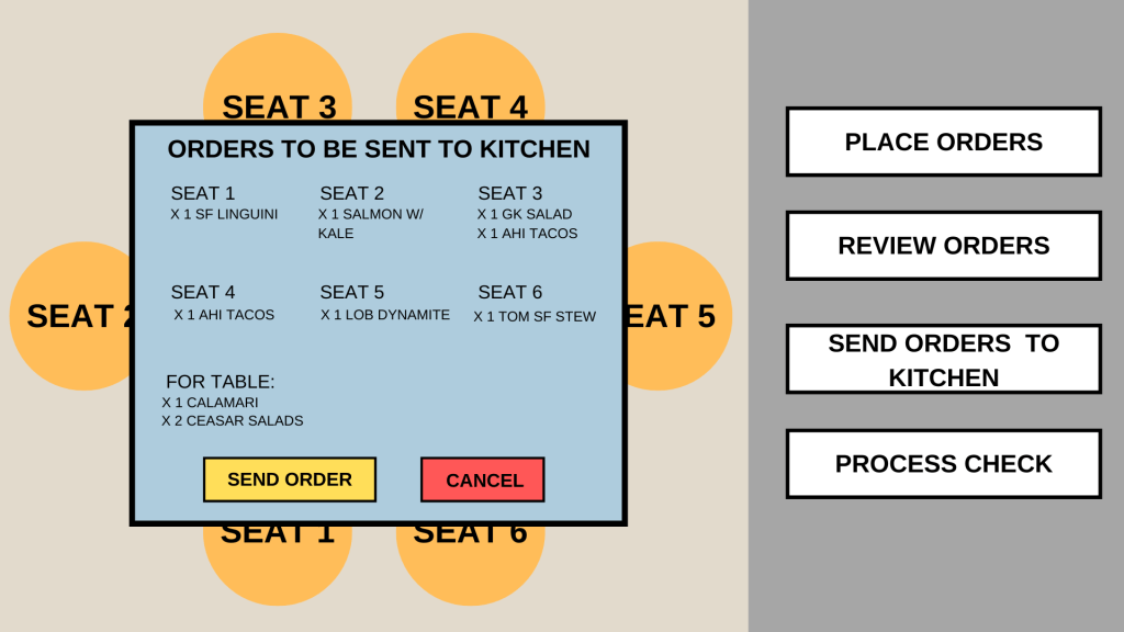 - Uses customizable restaurant floor-plan server notepads and iPads to take orders directly at tables